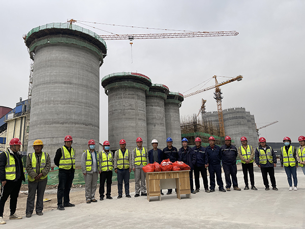 从2020年12月5日开始到2021年2月底,项目所在地政府连续发布大气污染预警,项目断断续续停工达一个月,导致工期延误。项目部急业主之所急,预警结束后,立即对各房号施工重新进行细致策划,制定详细的月计划、周计划、日计划,自3月4日起按照部署紧锣密鼓地展开水泥储存库滑模工程施工。在劳力组织上,项目部重新梳理各工序,进一步优化配置各作业工种,同时实行24小时两班倒连续施工。混凝土连续浇筑是滑模施工的关键,项目部将用于混凝土垂直运输的汽车泵增加到3台,筒仓滑模以每天3.5米的速度持续快速滑升。在粉煤灰库滑模施工期间,有一半的天数都在下雨,风力等级都在三级,大家迎难而上,喊出了“刮风当电扇,下雨当流汗,大伙拼命干”的口号,充分发扬四建职工的铁军精神,齐心协力抢抓施工。项目部全体人员勠力同心、通力合作,自滑模开始至4月28日水泥配料站最后一方混凝土浇筑完成,历时56天,提前4天完成施工任务。