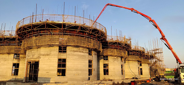 正在进行的滑模施工共有16座立筒仓和18座浅圆仓。其中浅圆仓直径23米,立筒仓直径12米,为联体仓,是整个滑模施工的难点。针对这一情况,项目部细致策划,通过模拟滑模施工,确定滑模提升速度及提模时间点等关键点,对易出问题的环节和管理重点、难点制定预案,实现高效施工。